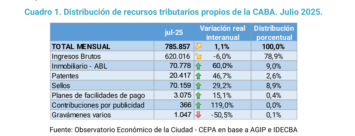 Los recursos propios de la CABA en julio 2025