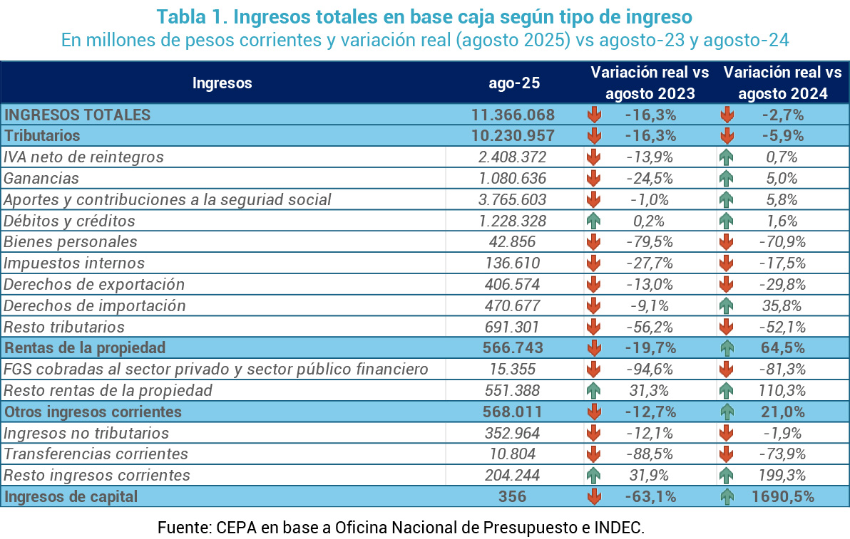 Análisis de los ingresos, gastos y resultados del Sector Público Nacional Septiembre 2025: datos de agosto 2025