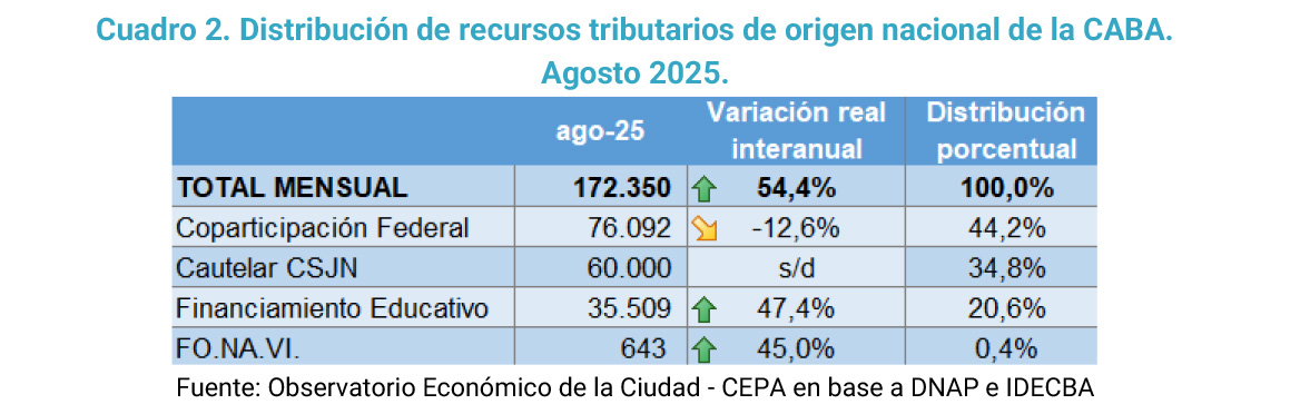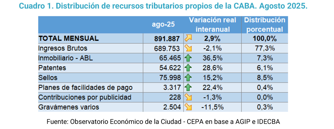 Los recursos de la Ciudad de Buenos Aires: un análisis de la recaudación propia y la Coparticipación Federal - datos a agosto 2025