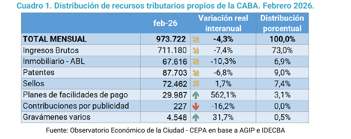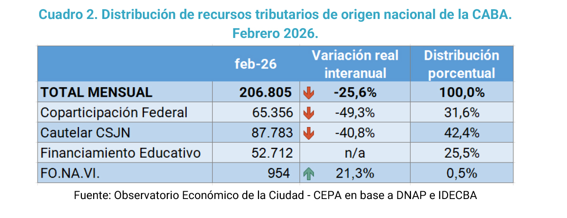 Los recursos de la Ciudad de Buenos Aires: un análisis de la recaudación propia y la Coparticipación Federal - datos a Febrero 2026
