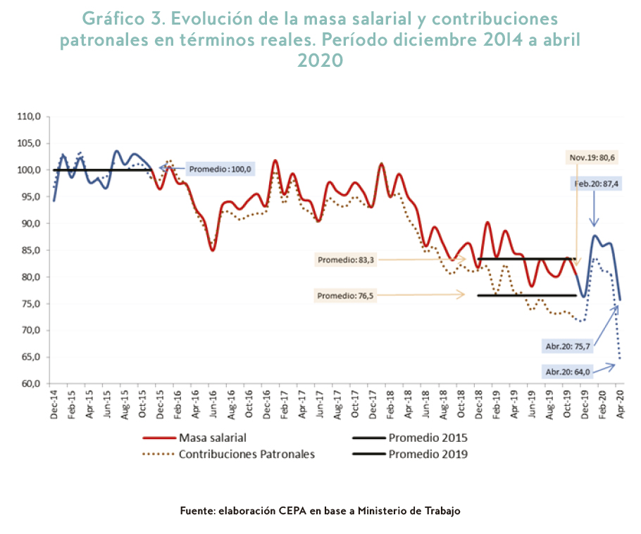 2- Evolución de la masa salarial y contribuciones patronales durante la gestión de Cambiemos versus los meses de pandemia