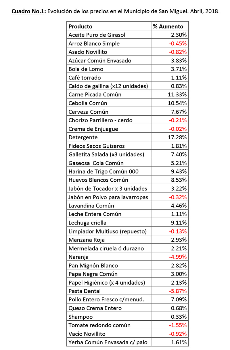 Precios de San Miguel, provincia de Buenos Aires, abril 2018