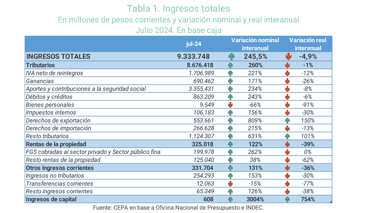 Informe fiscal: análisis de los ingresos, gastos y resultados del Sector Público Nacional - Datos a julio de 2024